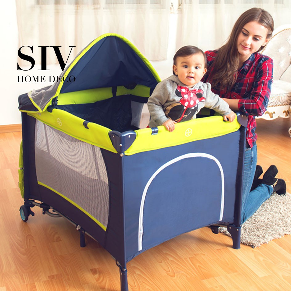 Siv Portable Foldable Baby Cot Playpen Travel Baby Bed Crib With Diaper Changing Deck Mosquito Net Shopee Malaysia